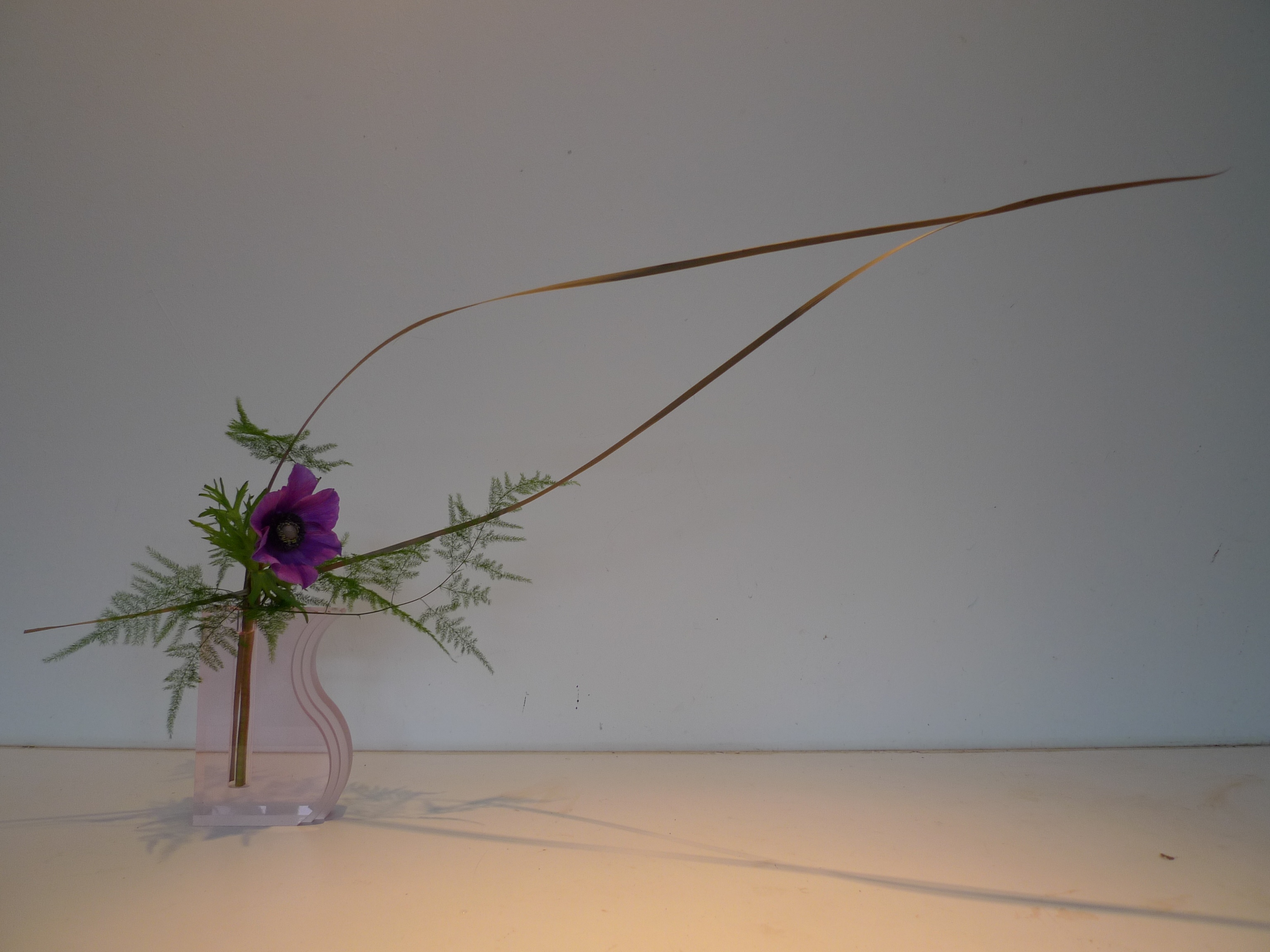Mijn planten en planten -Anemoon Posted by hanakunst 0 キンポウゲ科の美しい花。可憐な花びらを見ると、語源の「風」も解る気がしますけど、茎は以外と太くて力強い! アクリル花器「ビオラ」のきれいな薄ピンクとアネモネの濃紫がよくあって好きです